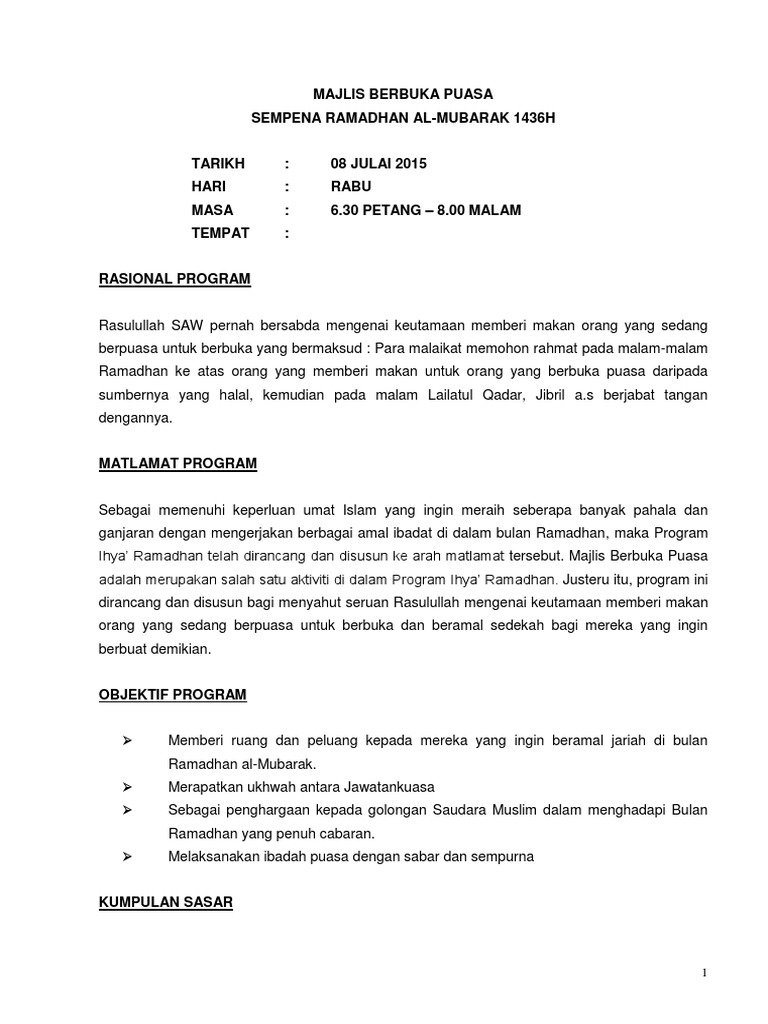 Sample Kertas Kerja Berbuka Puasa Pdf